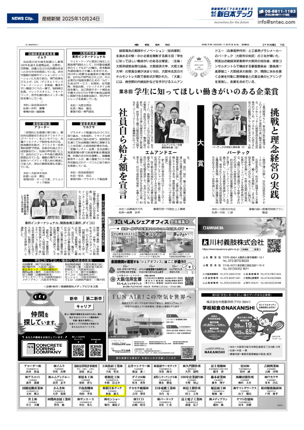産経新聞(2025年10月24日発行)の「PR特集 - 第8回 学生に知ってほしい働きがいのある企業賞」に当社が掲載されました。